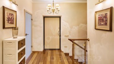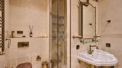 Двухуровневый пентхаус 209 м² с тремя спальнями в доме "Маршала Новикова, 12" — пространство с характером и атмосферой итальянской деревни. Квартира полностью мебелирована. Интерьер создан вручную: уникальная фреска у камина стоимостью около 1 млн $, фреска на кухне, гипсовые карнизы, декоративные молдинги, графика на стенах и многоуровневые потолки.