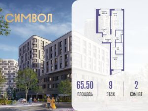Продается 2-комнатная квартира от застройщика: общая площадь 65.50 м², жилая 30.20 м², кухня 17.50 м², 9-й этаж, жилой квартал "Вдохновение", корпус 33 (секция 2). Срок сдачи: 4 квартал 2027 года.