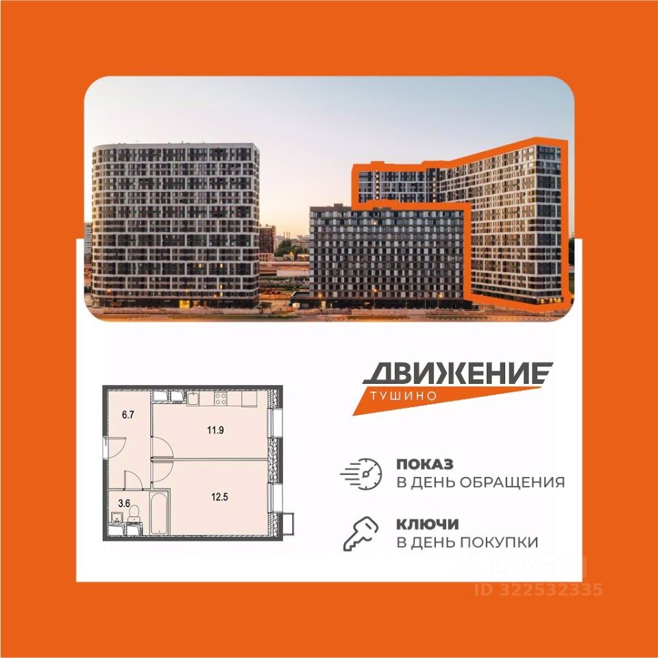 Движение. Тушино — квартал готовых апартаментов с яркой архитектурой и благоустроенной средой в экологически чистом районе Покровское-Стрешнево. Метро Спартак и метро Тушинская в 5 минутах пешком. До центра можно добраться за 15-20 минут. Предлагаем апартаменты площадью 35,3 м² расположенные на 2-ом этаже. Планировка включает одну комнату и совмещенный санузел. Вид на улицу. Апартаменты без отделки. Проект расположен в окружении четырёх парков. В шаговой доступности обустроенная набережная Москвы-реки с пляжем, зонами отдыха и экопарком, площадью 14 гектаров, оборудованным детскими и спортивными площадками и сетью прогулочных дорожек. Любители активного отдыха по достоинству оценят крупный спортивный кластер столицы: стадион Лукойл Арена, теннисный центр, Чкалов арена. А Дворец спорта с бассейном и секциями по хоккею, танцам и фигурному катанию будет построен в ближайшее время. Дополняет инфраструктуру центр спортивной медицины, где можно восстановить силы и поддерживать здоровье. В общеобразовательную инфраструктуру включены 8 детских садов и 5 школ с разными специализациями. На первых этажах апарт-комплекса уже работает ритейл: кафе MaxBakery, ВкусВилл и супермаркет Дикси. Жителям доступны пункты выдачи OZON, WB и Яндекс. Маркет, аптека Горздрав, мебельные и интерьерные магазины, а также салоны красоты. Для семей с малышами работает центр развития 'Мама, я плыву!'. Комплекс из четырех корпусов объединяет просторный двор без автомобилей с детскими и спортивными площадками, уютными зонами отдыха и прогулочными аллеями. За безопасность отвечают система видеонаблюдения и контроль доступа. Входные группы выполнены в стильной концепции с консьерж-сервисом 24/7 и уютным комьюнити-пространством для встреч ваших гостей. Бесшумные скоростные лифты с прямым доступом из подземного паркинга обеспечивают комфорт и удобство в любое время года. Для хранения колясок, спортивного инвентаря и сезонных вещей предусмотрены кладовые помещения на -1 этаже. Условия покупки: - Показ в день обращения - Ключи в день сделки - Скидка до 12% при 100% оплате - Субсидированная ипотека от 0,1% Быстрый выход на сделку: поможем со сбором документов и согласованием ипотеки (при необходимости)Всего в продаже 100 лотов. Поможем определиться с выбором!