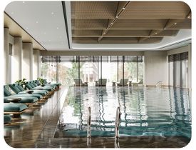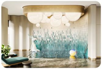 Sminex. В нём представлена клубная гостиная с террасой по стандарту Friends Lab для встреч и совместного отдыха жителей, оборудован просторный детский игровой клуб по стандарту Kids Lab, предусмотрен бесплатный фитнес с комфортным 25-метровым бассейном, отдельным бассейном V для детей, хот-табом, сауной.