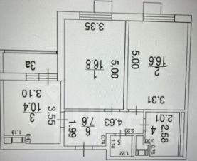 2 изолированные комнаты площадью - 16,6 и 16,8 кв.м