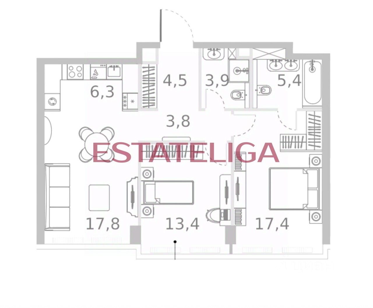 Id 57111. Продается евро трёхкомнатная квартира в жилом комплексе премиум-класса River Park Кутузовский в Emerald Tower с отделкой White box.