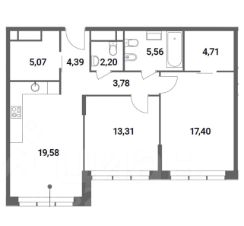 1 сaнузел, cпальня с гардеробной. Просторная кухня-гостиная.