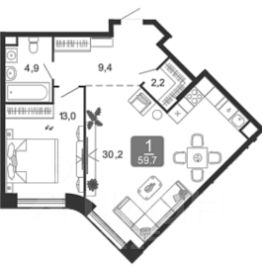 Представляем вашему вниманию просторную двухкомнатную квартиру площадью 59.7 кв. м в современном доме на 8-м этаже из 16. Высота потолков 3.1 метра создает ощущение простора и свободы. Дом находится в шаговой доступности от станции метро ЗИЛ — всего 23 минуты пешком.