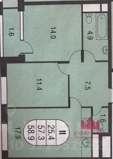Id 57119. В продаже двухкомнатная квартира площадью 58.5 м