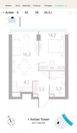 * Площадь - 45,3 м';