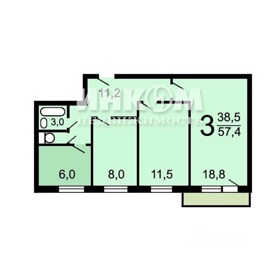 57,8 м²