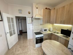 В квартире выполнен косметический ремонт, высота потолков — 2,64 м. Жилая площадь составляет 16 кв. м, площадь кухни — 10 кв. м. Наличие индивидуального котла обеспечивает эффективное отопление. Из мебели - оставляем кухонный гарнитур. На полу в кухне, коридоре, сан.узле и на балконе - кафель, в комнате ламинат.