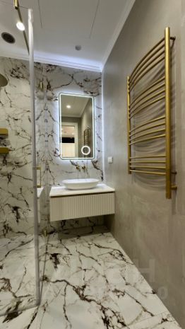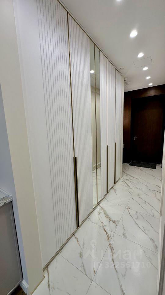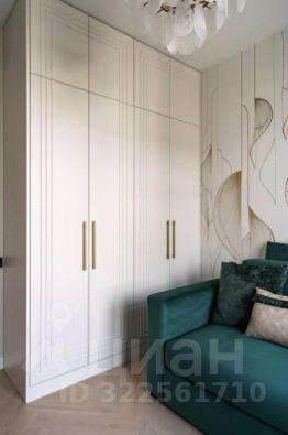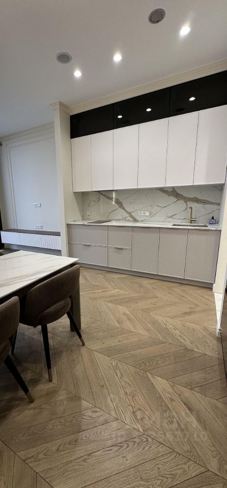 Планировка квартиры: большая и светлая кухня-гостиная, уютная спальня, санузел, комната, гардеробная, холл.