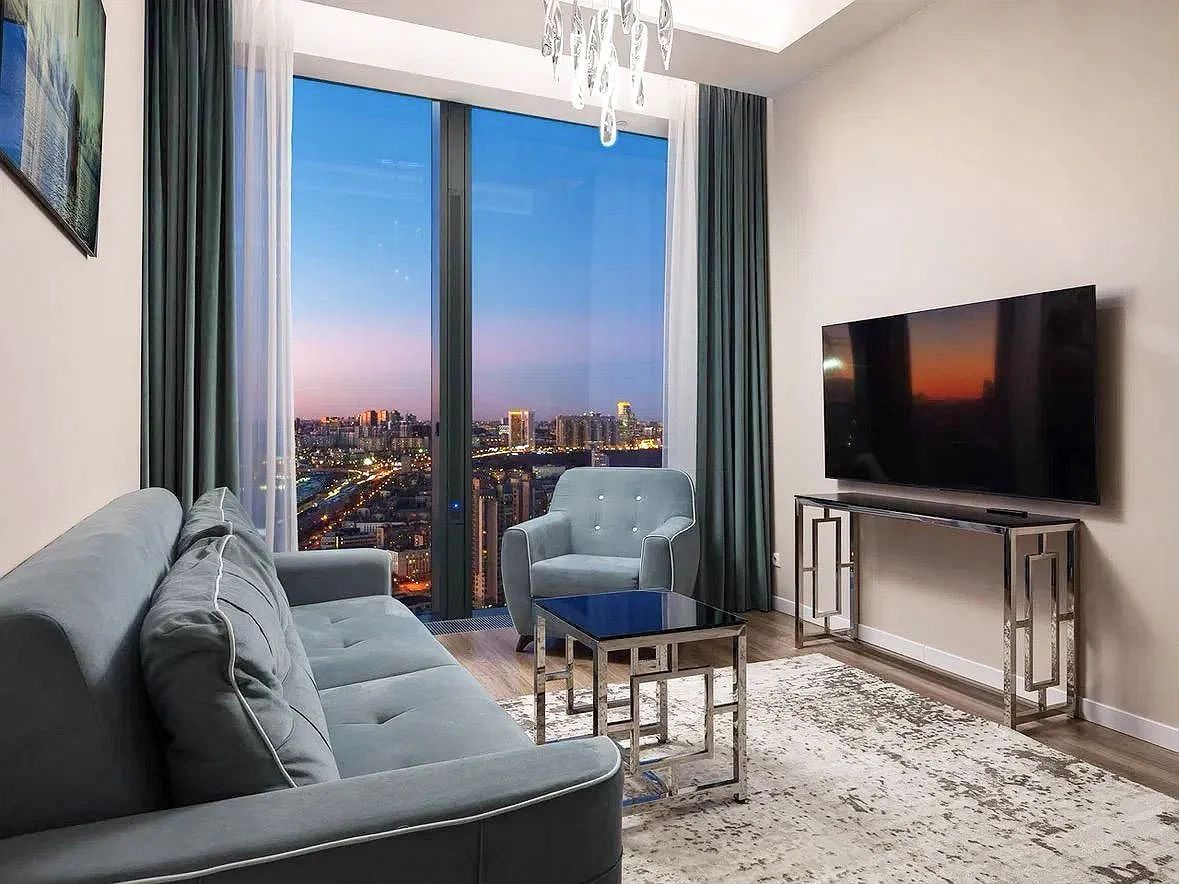 Панорамное остекление открывает захватывающие виды на столицу, наполняя пространство естественным светом и энергией.