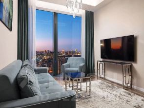 В продажу предлагается шикарный апартамент с панорамными видами и дизайнерским ремонтом в престижной башне Нева.
