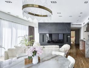 Панорамное остекление открывает захватывающие виды на столицу, наполняя пространство естественным светом и энергией.