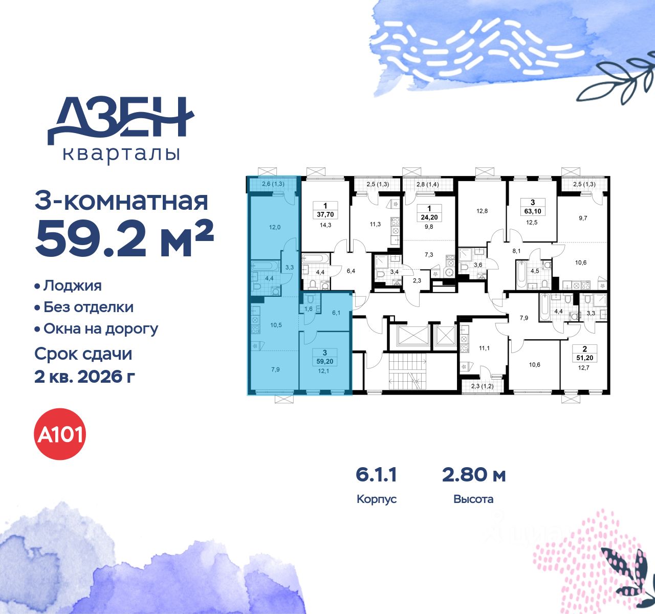 Продается трехкомнатная квартира 167 в новостройке ЖК "Дзен-кварталы" по адресу Москва, ТиНАО, Новомосковский АО, Сосенское С/П, жилой комплекс Дзен-кварталы, 6.1.1, район Коммунарка, Новомосковский административный округ, Москва. Общая площадь квартиры - 59.20 кв. м., этаж 8 из 11, секция 4. Тип проекта, по которому построен дом - монолит, компания-застройщик - ООО "А101". Стоимость квартиры - 22232560 Р. Срок сдачи - 2 квартал 2026.