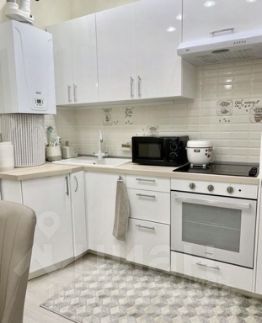 Кухня: встроенная кухонная мебель с бытовой техникой, холодильник, столовая группа. Выход на застеклённый балкон (3 м) - из кухни.