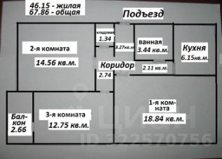Общая площадь 67.9 м², жилая 46.2 м², кухня 6,2 м². Продаётся большая 3-комн. кв. ВАО (ул. Снайперская, 14/9), от метро Выхино 600 метров.