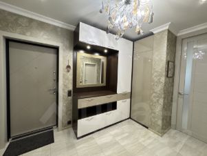 В спальне встроенный 4-х створчатый глубокий шкаф-купе с зеркальными дверцами в центре (внутри шкафа очень много места для хранения вещей, ящики, полочки, штанги для одежды). В прихожей также оборудована очень удобная и стильная система хранения.
