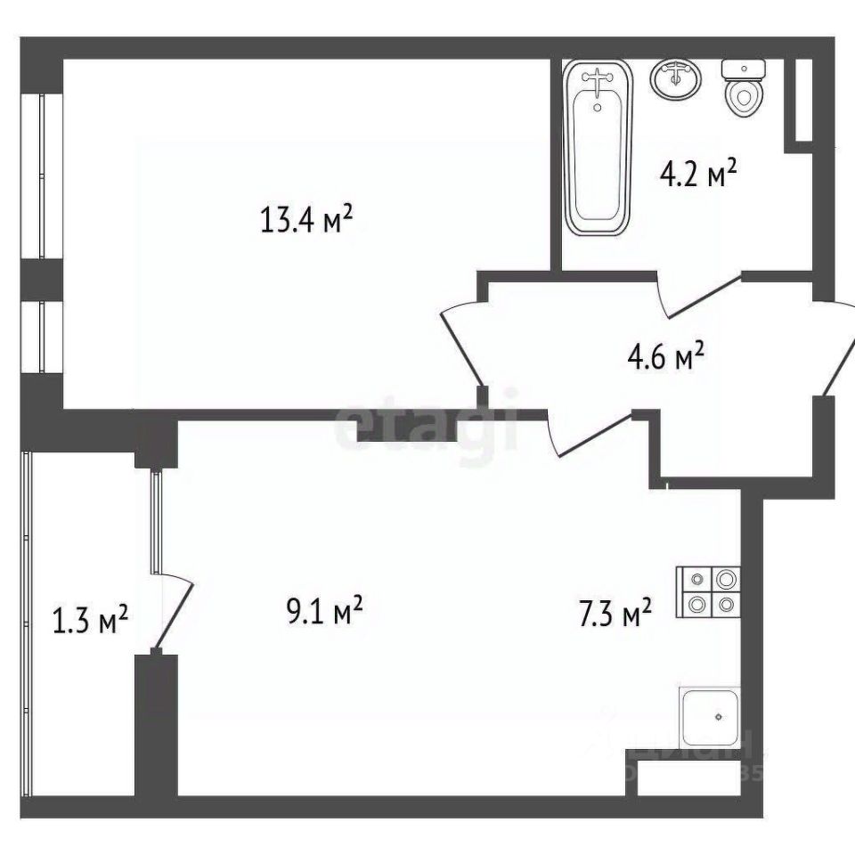 - большая кухня гостиная 16,4кв.м с выходом на утепленную лоджию 2,6кв.м.