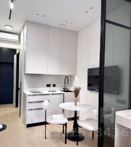 Дизайнерская студия в квартале бизнес-класса Зиларт. В квартире оборудована зона кухни с диваном и столовой группой, зона с гардеробом и рабочим столом и зона сна с кроватью шириной 140 см.