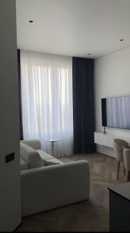Эта квартира сочетает дизайнерский стиль, технологичность и уют. Здесь есть всё необходимое для жизни: мебель, техника, текстиль, посуда. Вам остаётся только привезти личные вещи.