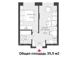 Евродвухкомнатная общей площадью 35,5м2, подойдет молодой семье.