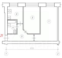 Общая площадь 43,1 кв м: две изолированные комнаты 11,6 кв м и 16,1 кв м, в одной из комнат просторный встроенный шкаф-купе, кухня составляет 6 кв м, совмещенный с/у 3,2 кв м, коридор 6,5 кв м.