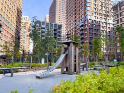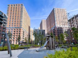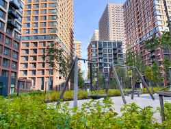 ЖК состоит из домов высотой от 9 до 21 этажей и уютных дворов-парков. На подземных этажах предусмотрены паркинги с велостоянкой и зарядками для электромобилей, а также вместительные кладовые. В светлых и просторных лобби есть комнаты для колясок и лапомойка для собак.