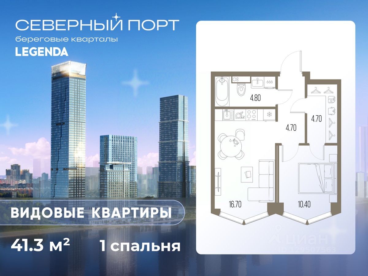 Однокомнатная квартира от застройщика с предчистовой отделкой в ЖК "Северный Порт" на 5 этаже. Общая площадь: 41.3 кв.м., жилая: 10.5 кв.м., площадь просторной кухни-столовой: 16.7 кв.м. Все окна выходят на одну сторону. В квартире один совмещенный санузел. Высота потолков 3.15 м.
