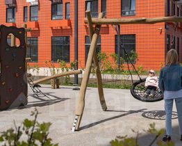 В проекте предусмотрена медленная зона для электросамокатов — с 7 утра до полуночи при въезде на территорию квартала скорость электросамокатов автоматически снижается до 15 км/ч. Артикул 931670 (Застройщик АО "Специализированный застройщик "Волжский парк"")