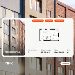 Продаётся 2-комн. квартира площадью 52,3 кв.м на 4 этаже 37 этажного дома (Корпус 1.1, Секция 1) проекта ПИК Москворечье. Светлый просторный подъезд на уровне земли, функциональная планировка, большие окна, c отделкой.