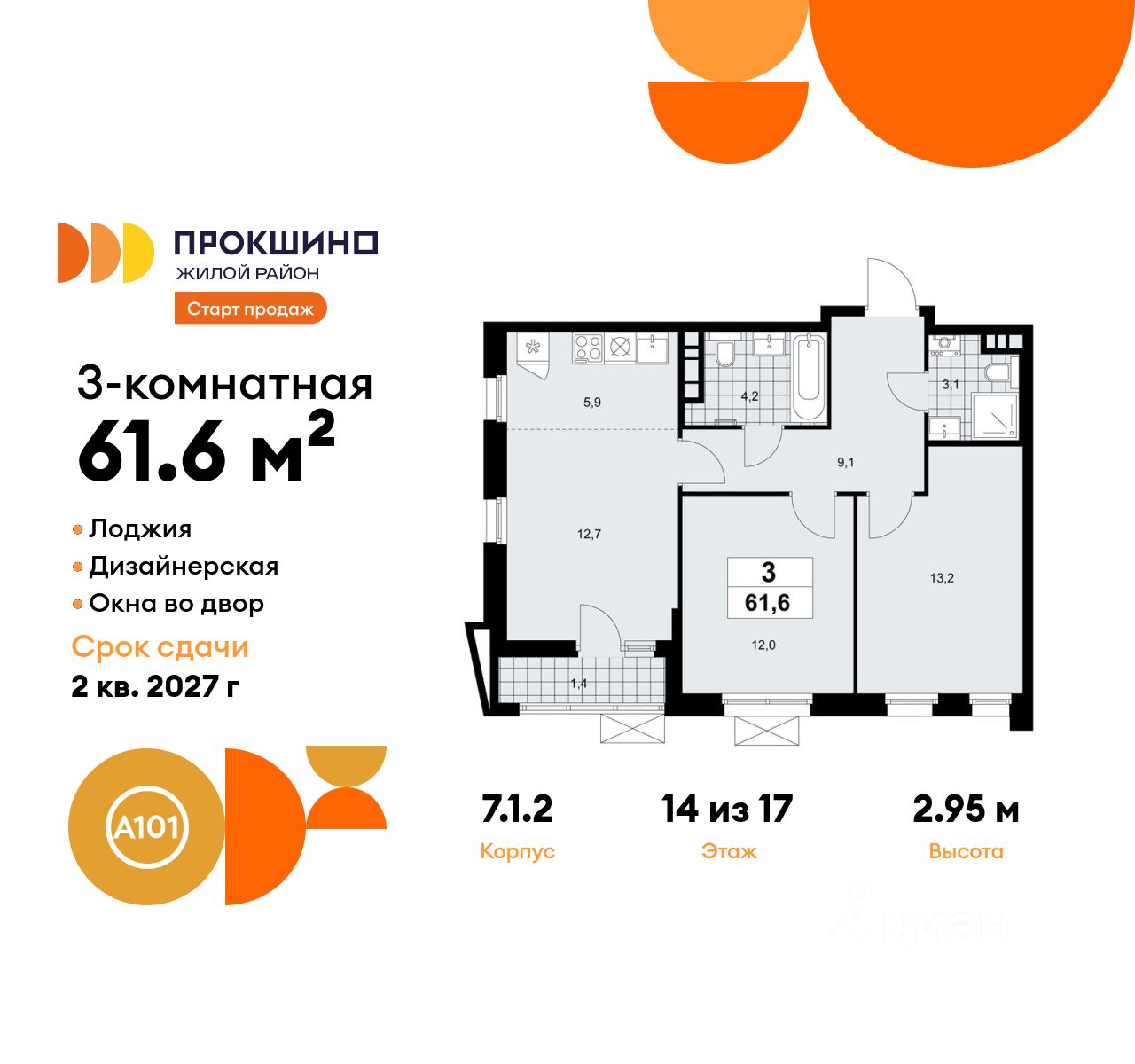 Продается трехкомнатная квартира 260 в новостройке Жилой квартал "Прокшино" по адресу Москва, ТиНАО, Новомосковский АО, Сосенское С/П, жилой комплекс Прокшино, 7.1.2, район Коммунарка, Новомосковский административный округ, Москва. Общая площадь квартиры - 61.60 кв. м., этаж 14 из 17, секция 4. Тип проекта, по которому построен дом - монолит, компания-застройщик - ООО "А101". Стоимость квартиры - 29128176 Р. Срок сдачи - 2 квартал 2027.