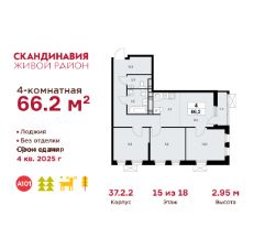 Продается четырехкомнатная квартира 332 в новостройке Жилой район "Скандинавия" по адресу Москва, ТиНАО, Новомосковский АО, Сосенское С/П, Коммунарка пос., жилой комплекс Скандинавия, 37.2.2. Общая площадь квартиры - 66.20 кв. м., этаж 15 из 18, секция 2. Тип проекта, по которому построен дом - монолит, компания-застройщик - ООО "А101". Стоимость квартиры - 27074476 Р. Срок сдачи - 1 квартал 2026.