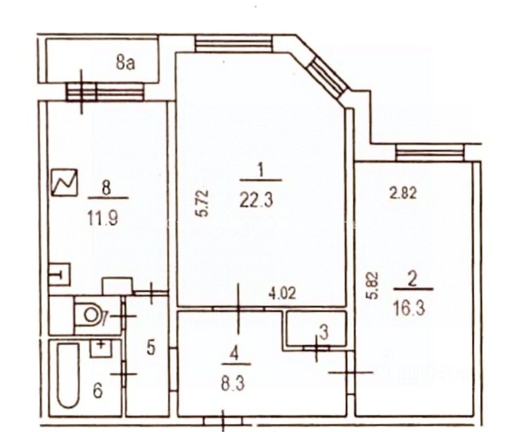 Две большие изолированные комнаты: 22,3 м² и 16,3 м².