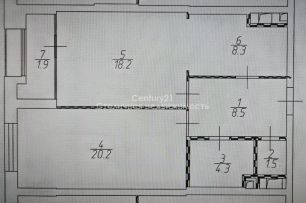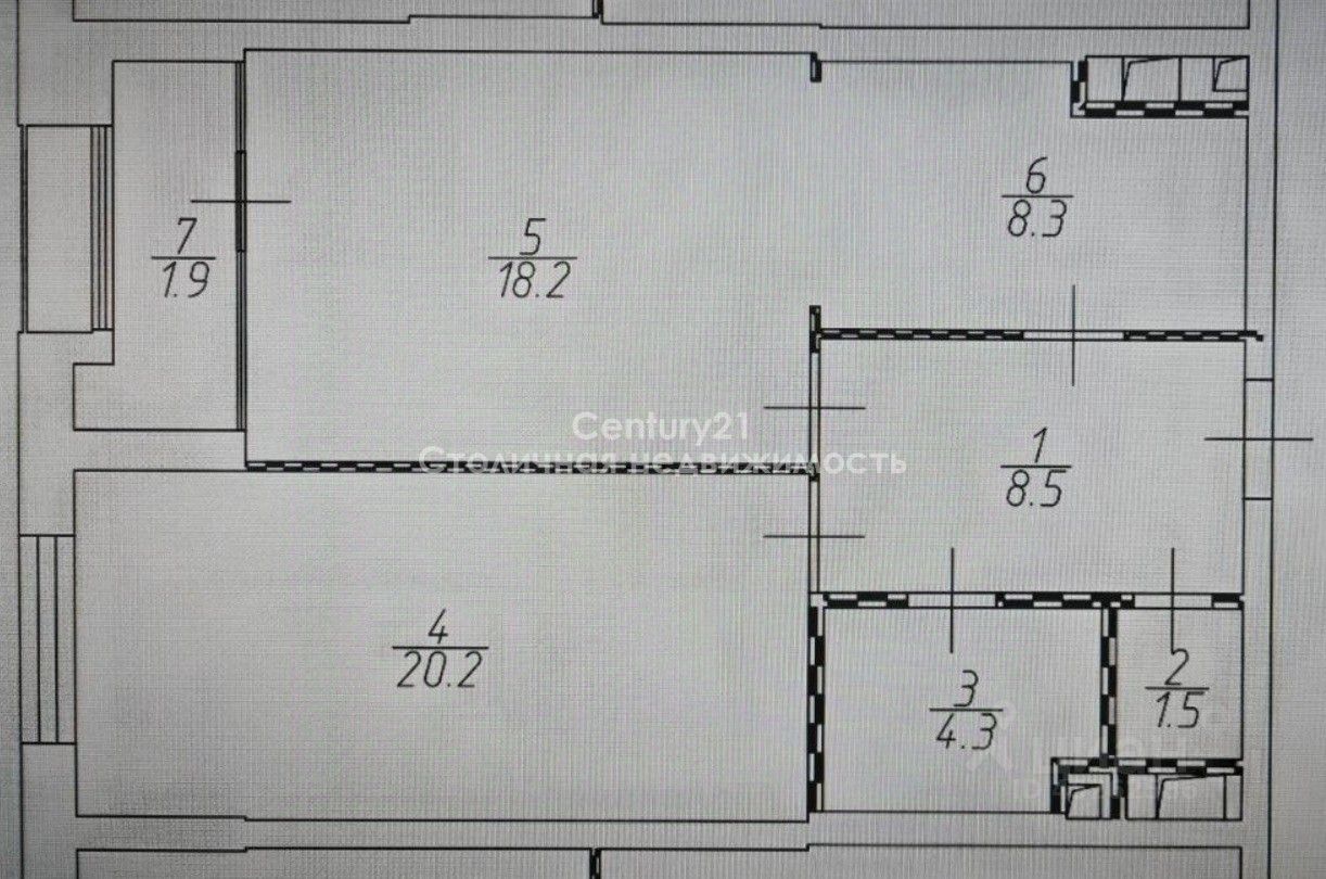 Планировка: кухня-гостиная 26,5 м², спальня 20,2 м², коридор 8,5 м², санузел 4,3 м², гардеробная 1,5 м², лоджия 1,9 м².