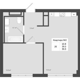 Продается 2-к квартира площадью 39.3 кв.м. на 1-м этаже