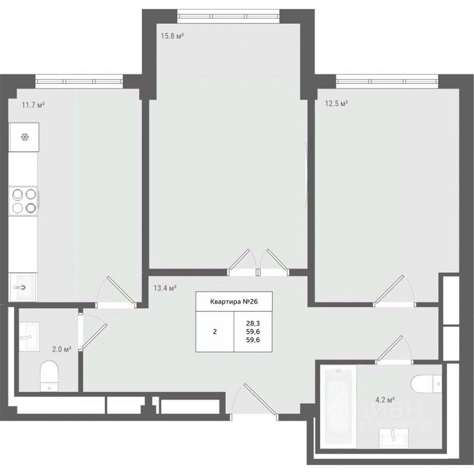 Продается 2-к квартира площадью 59.6 кв.м. на 4-м этаже