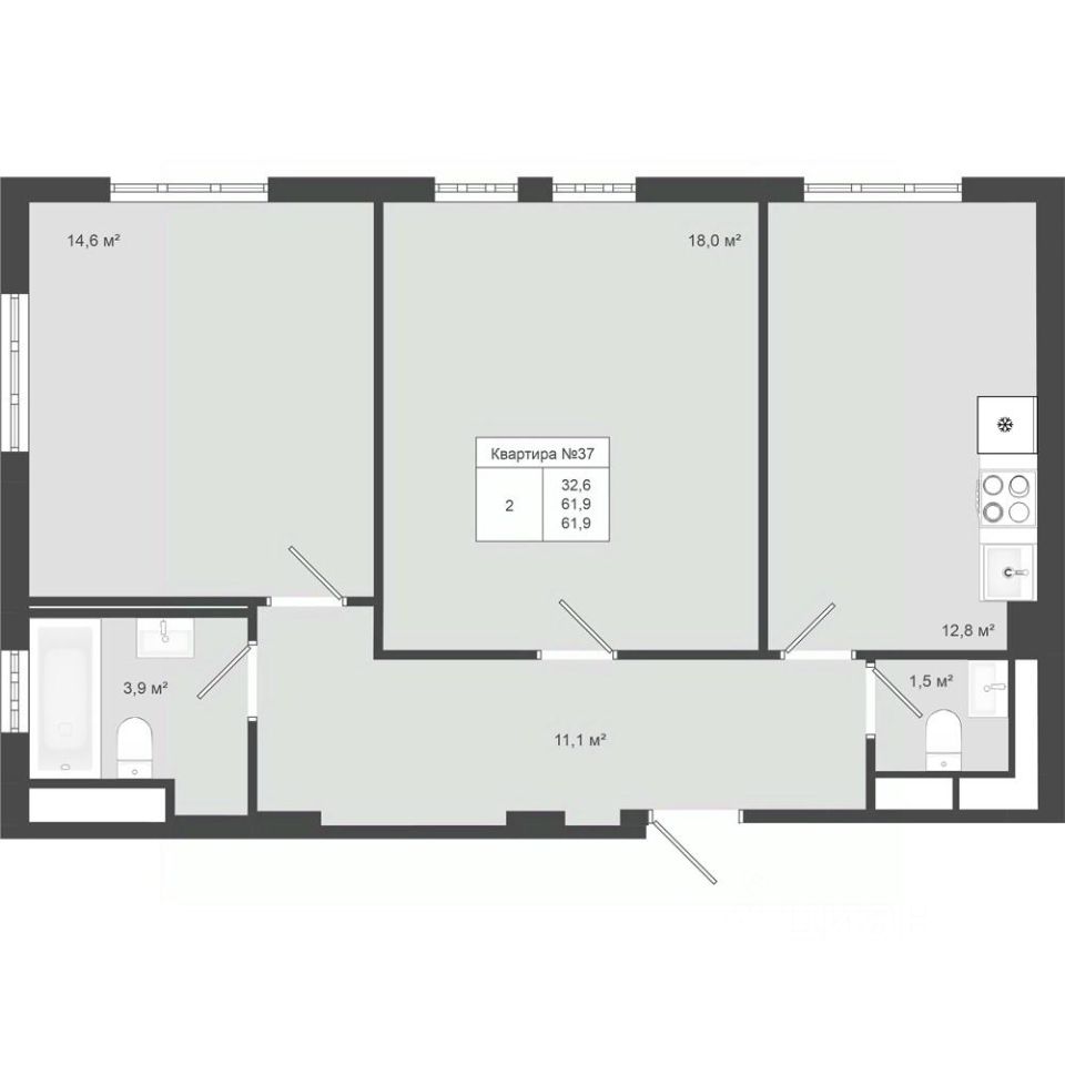 Продается 2-к квартира площадью 61.9 кв.м. на 2-м этаже
