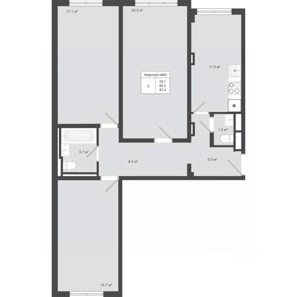 Продается 3-к квартира площадью 82.4 кв.м. на 1-м этаже