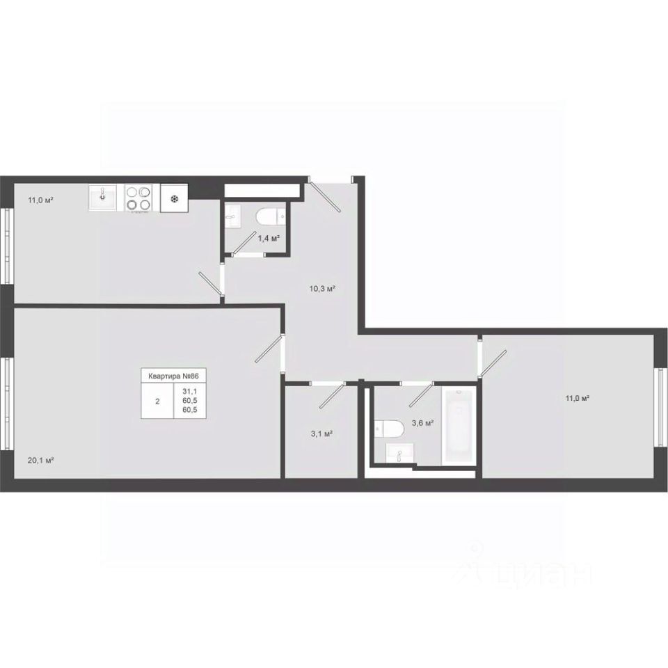 Продается 2-к квартира площадью 60.5 кв.м. на 4-м этаже