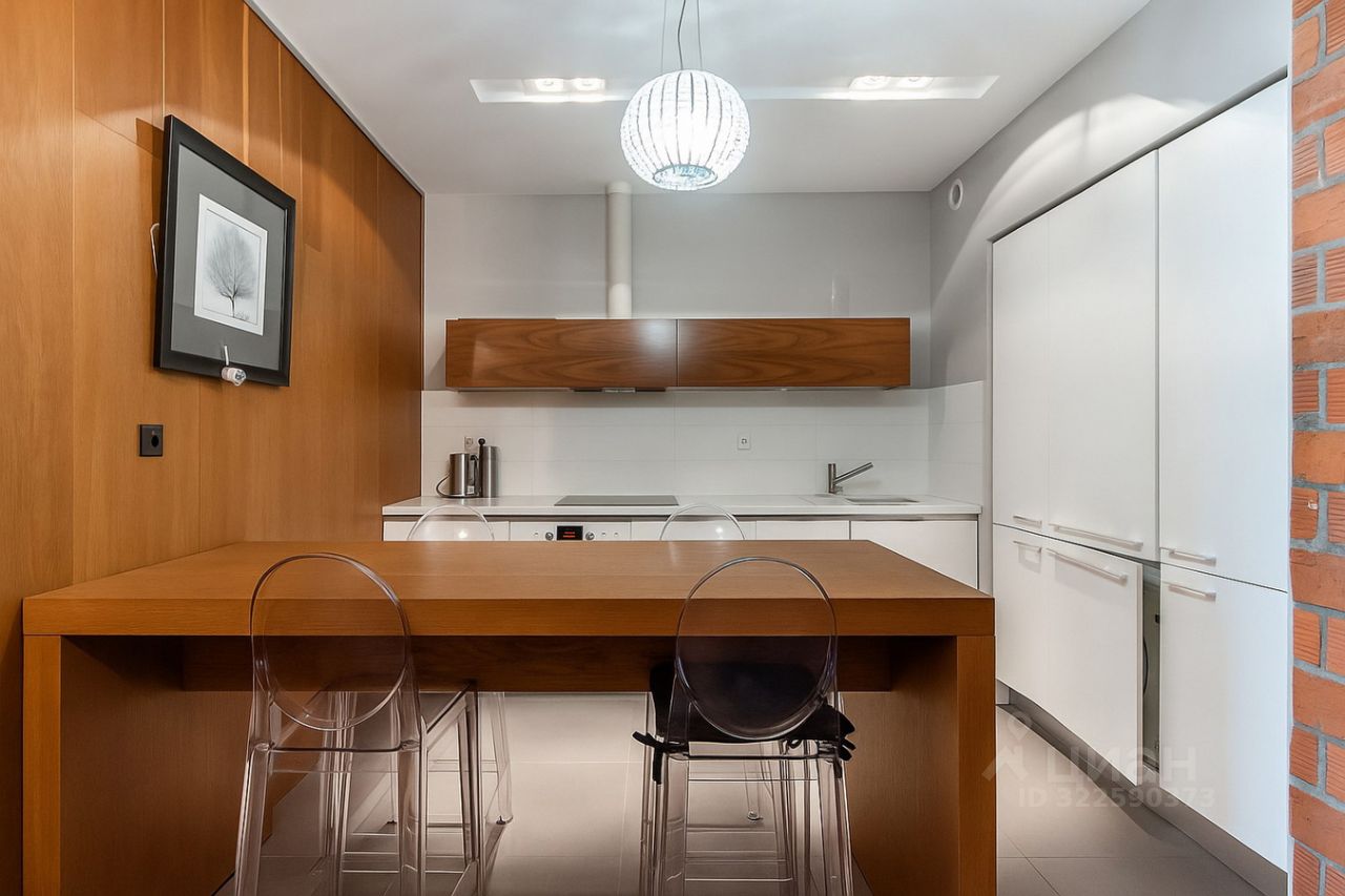 При отделке использованы дорогостоящие материалы: натуральная паркетная доска, сантехника премиум-класса Gessi, краска Benjamin Moore, мебель из массива на заказ, отделка стен шпоном и декоративной штукатуркой. В квартире создана комфортная атмосфера: сплит система кондиционирования, подогрев пола.