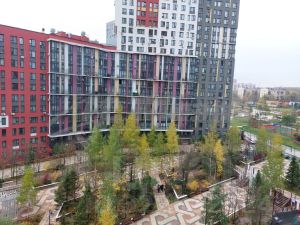 Жилой комплекс введен в эксплуатацию в 2017 г, вся инфраструктура уже есть: магазины, кафе, бытовые услуги. Также во дворе есть площадки для занятий спортом, в том числе теннисный корт, и для прогулок с домашним животными. Территория двора огорожена.
