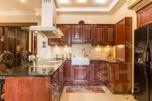 Вся мебель изготовлена из массива высококачественных пород дерева, с антикварным зеркалом 19 века, добавляющим нотку истории в современный интерьер.