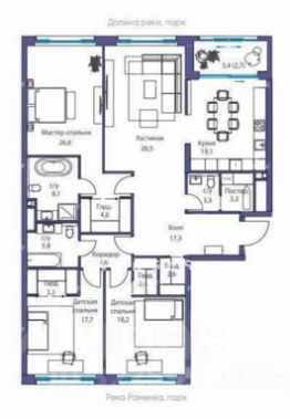 В клубном доме "РЕКА" представлен эксклюзивный лот — просторная квартира свободной планировки с панорамными видами из премиальных окон на две стороны. Высота потолков 3.65м. Идеальная инсоляция: солнце наполняет пространство светом с утра до вечера. Возможная планировка: кухня, столовая, лоджия, гостиная, 2 или 3 спальни, 2-3 санузла, гардеробные, постирочная. Из окон открываются живописные виды на Парк Событие с его тенистыми аллеями и цветущими клумбами, а также на современную школу — динамичный символ развитой инфраструктуры района. Такой ракурс сочетает в себе спокойствие природы и энергию городской жизни: утром вы наблюдаете, как парк наполняется солнечным светом, а днем видите, как школьники спешат на занятия. Идеальный баланс для тех, кто ценит и тишину зеленых зон, и удобство расположения важных объектов в шаговой доступности. Дополнительно можно приобрести два больших по площади машиноместа, удобное расположение в подземном паркинге. Полная сумма в договоре. Без обременений и залогов. Разумный торг уместен после просмотра и при определении всех условий сделки!