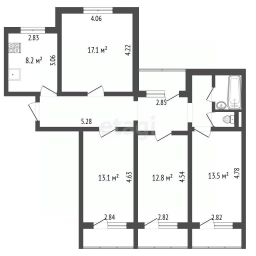 Четырехкомнатная квартира площадью 95 м² расположена в районе Текстильщики на 5 этаже 14-этажного панельного дома 1995 года постройки. Общая жилая площадь составляет 56,5 м², кухня — 8,2 м². Планировка включает четыре изолированные комнаты (17,1 м², 13,5 м², 12,8 м², 13,1 м²) с потолками 2,7 м, просторный коридор с возможностью организации гардеробных и четыре лоджии площадью по 3 м² каждая, которые можно использовать как кабинет, зону отдыха или дополнительное место для хранения. Полы покрыты паркетной доской из натурального дерева, в коридоре и комнатах установлены встроенные шкафы-купе с зеркальными секциями. Санузел раздельный, окна выходят на солнечную сторону во двор и на улицу. Квартира с косметическим ремонтом и свободной планировкой, что позволяет адаптировать пространство под индивидуальные потребности.