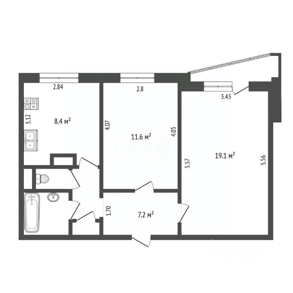 Двухкомнатная квартира площадью 51 м² расположена на 11 этаже в районе Южное Тушино.