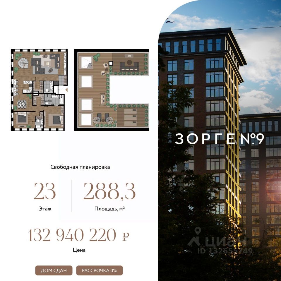 "Зорге 9" — готовые апартаменты бизнес-класса от компании St MICHAEL. 3 современных корпуса с фасадами в стиле архитектуры Нью-Йорка и с сервисами премиальных отелей, высотой до 21 этажа. На верхнем уровне комплекса расположены роскошные просторные пентхаусы с высотой потолка до 4,2 метра и панорамными окнами до 3,6 метров, открывающими великолепные виды на столицу. Пентхаусы с выходами на собственные приватные террасы на кровле, площадью от 150 кв. м являются жильем high-уровня, демонстрирующим высокий статус владельца. В них предусмотрена уникальная опция на потолках есть "световые фонари", дающие максимальный уровень света и воздуха. Свободная планировка, небольшая глубина этажа, огромные панорамные окна в пол и высота потолков до 4,2 м позволят реализовать самые смелые концептуальные идеи и создать идеальный интерьер с учетом всех пожеланий. Вдохновляющие виды на город украсят ваш апартамент лучше любой картины. Есть возможность приобретения дизайн-проекта и полной меблировки апартаментов от партнеров девелопера. Взыскательному вкусу резидентов комплекса соответствуют элегантные лобби с дизайнерской отделкой премиальными материалами, lounge-зона для отдыха и встреч с гостями, кафе с камином и легким эмбиентом, стильная отделка холлов. Престижная локация на Ходынке обеспечит жителей комплекса богатой инфраструктурой исторического района и быстрым доступом к центру города. До делового центра "Москва-Сити" от "Зорге 9" всего 10 минут на автомобиле. "Зорге 9" СДАН, все корпуса введены в эксплуатацию.