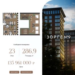 "Зорге 9" — готовые апартаменты бизнес-класса от компании St MICHAEL. 3 современных корпуса с фасадами в стиле архитектуры Нью-Йорка и с сервисами премиальных отелей, высотой до 21 этажа. На верхнем уровне комплекса расположены роскошные просторные пентхаусы с высотой потолка до 4,2 метра и панорамными окнами до 3,6 метров, открывающими великолепные виды на столицу. Пентхаусы с выходами на собственные приватные террасы на кровле, площадью от 150 кв. м являются жильем high-уровня, демонстрирующим высокий статус владельца. В них предусмотрена уникальная опция на потолках есть "световые фонари", дающие максимальный уровень света и воздуха. Свободная планировка, небольшая глубина этажа, огромные панорамные окна в пол и высота потолков до 4,2 м позволят реализовать самые смелые концептуальные идеи и создать идеальный интерьер с учетом всех пожеланий. Вдохновляющие виды на город украсят ваш апартамент лучше любой картины. Есть возможность приобретения дизайн-проекта и полной меблировки апартаментов от партнеров девелопера. Взыскательному вкусу резидентов комплекса соответствуют элегантные лобби с дизайнерской отделкой премиальными материалами, lounge-зона для отдыха и встреч с гостями, кафе с камином и легким эмбиентом, стильная отделка холлов. Престижная локация на Ходынке обеспечит жителей комплекса богатой инфраструктурой исторического района и быстрым доступом к центру города. До делового центра "Москва-Сити" от "Зорге 9" всего 10 минут на автомобиле. "Зорге 9" СДАН, все корпуса введены в эксплуатацию.
