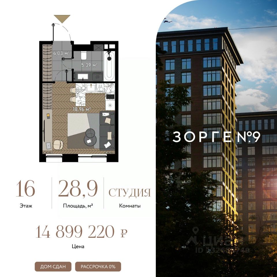 "Зорге 9" — готовый квартал апартаментов с премиальными сервисами на Ходынке. В трех корпусах с панорамными окнами предусмотрены уникальные форматы площадей, удовлетворяющие самый взыскательный вкус. В 7 минутах ходьбы от "Зорге 9" расположены 4 станции метро: Полежаевская", "Хорошевская", "Зорге" и "Хорошево". До делового центра "Москва-Сити" 10 минут на автомобиле. Простота форм, строгие линии, панорамные окна, архитектурное освещение и арт-объекты поддержат атмосферу роскоши и комфортной жизни на Ходынке. Именно за яркую архитектуру апарт-комплекс "Зорге 9" получил престижную международную премию European Property Awards. Комплекс полностью введен в эксплуатацию. "Зорге 9" — территория инноваций. Высокие потолки и панорамные окна Guardian ClimaGuard Solar с энергоэффективным "умным" напылением. Предусмотрен ряд премиальных сервисов: вход по Face ID, мобильное приложение резидента, дающее доступ ко всем услугам в один клик, 500 видеокамер на территории, двухуровневый подземный паркинг с автоматическим шлагбаумом, зарядкой для электромобилей, велосейфом и станцией подкачки шин. В "Зорге 9" можно рассмотреть варианты площадей от 27 до 81 кв. м, свободной планировки, с окнами в пол и высотой потолков 3,15 м, а также уникальные форматы пространств. Апартаменты с террасами позволят создать дополнительное рабочее пространство или зону отдыха на свежем воздухе, а тканевые маркизы помогут создать тень и повысить уровень приватности. Угловое остекление станет особой изюминкой и украсит любой интерьер. На последних этажах предусмотрены пентхаусы с каминами и выходами на кровлю: от 150 кв. м жилья high-уровня с максимальным уровнем инсоляции — на потолках в пентхаусах появятся так называемые "световые фонари". "Зорге 9" СДАН, все корпуса введены в эксплуатацию.