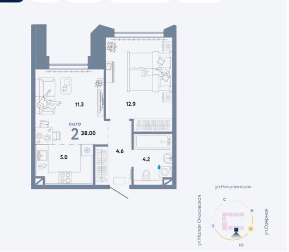 2-комн. квартира, 38 м²