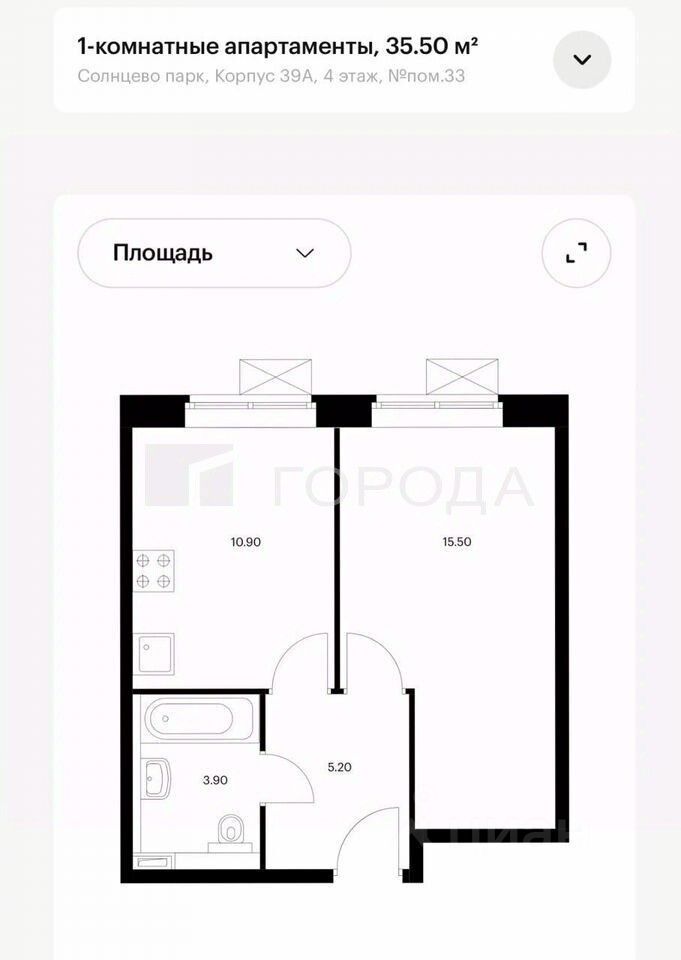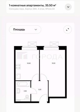 Продаются однокомнатные апартаменты площадью 35,5 кв. м в Новомосковском административном округе,