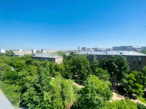 Квартира: на 10 этаже, вид из окон во двор и на улицу, три изолированные комнаты: 18, 9.8 и 12.8 кв. М, кухня 8.6 кв. М., раздельный СУ, застекленная лоджия.